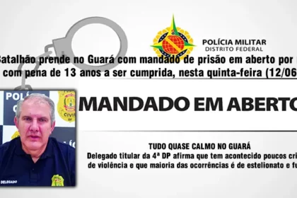 A Polícia Militar do Distrito Federal, por meio de uma equipe do 4º Batalhão no Guará, cumpriu nesta quinta-feira (12/06) um mandado de prisão em aberto contra um homem condenado a 13 anos de reclusão...