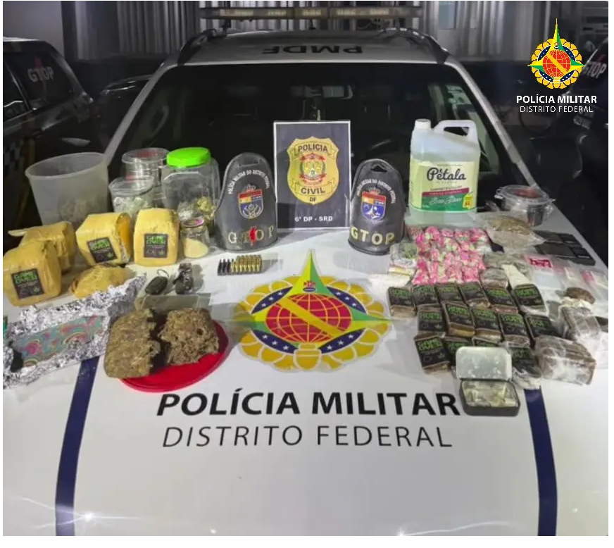 No dia de hoje 15-04-2026, a Polícia Militar do Distrito Federal realizou ação integrada na região de Samambaia, que resultou na prisão de cinco indivíduos por tráfico de drogas. A ocorrência foi possível a partir do compartilhamento de informações entre equipes policiais, culminando na apreensão de grande quantidade de entorpecentes, incluindo 5 kg de maconha do tipo skunk, 64 tabletes de dry ice, cerca de 1000 comprimidos de ecstasy, diversas porções de LSD, MDMA e mais de 5 litros de lança-perfume. Também foram apreendidas 32 munições calibre 9mm e três veículos. A ação resultou em prejuízo estimado de aproximadamente R$ 500 mil ao tráfico de drogas. Os envolvidos foram detidos e encaminhados para as providências legais cabíveis.